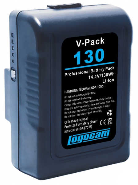 Logocam V-Pack 130 - литий-ионная аккумуляторная батарея с номинальным напряжением 14,4 В и ёмкостью 130 Втч (9Ач), предназначенная для использования с профессиональными видеокамерами SONY DSR-250, DSR-300, DSR-370, DSR-390, DSR-400, DSR-450, DSR-500, DSR-570 и др. Может применяться в качестве замены для батарей SONYcерий BP-L и BP-GL, а также IDX Endura Li-Ion Batteries E-50, E-50S, E-80S, E-10. Оснащена разъемом PowerTap (AB 2 пин) для подключения внешней нагрузки. Батарея имеет российский сертификат соответствия. |