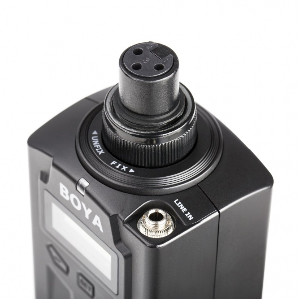 BY-WXLR8 Plug-On XLR - передатчик для BOYA BY-WM6 и BY-WM8. Позволяет подключать любой XLR-микрофон к беспроводному приемнику BY-WM6 и BY-WM8. Он оснащен легко читаемым ЖК-дисплеем, широкой полосой пропускания RF, переключаемыми входами Mic / Line / MIX и цифровой схемой, прочным легким пластиковым корпусом и подходит для DSLR видеосъемки, полевой съемки, широковещательного телевидения и электронных приложения для сбора новостей (ENG). BOYA BY-WXLR8 — это беспроводной радиочастотный передатчик XLR с ЖК-дисплеем, предназначенный для работы с BY-WM6 и BY-WM8. BOYA BY-WXLR8, BY-HM100.