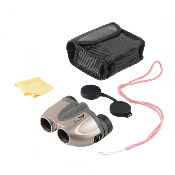 Бинокль Veber Prima 5x20 Pearl театральный Благодаря использованию оптических элементов с многослойным просветлением, картинка получается яркая, чёткая, сочная без каких-либо искажений и окрашивания по краям поля зрения. Театральный бинокль Veber Prima 5х20 - не просто аксессуар, но и «профессиональный» инструмент с помощью которого ничто, даже происходящее в самых затемнённых уголках сцены, не уйдёт от внимания искушённого зрителя. Элегантный, дизайнерский с прецизионной механикой, которая обеспечивает плавное, комфортное вращение колец фокусировки. Бинокль Veber Prima станет верным спутником при походе не только в театр, но и при наблюдениях на открытом воздухе, спортивных и концертных мероприятиях. Минимальная дистанция фокусировки составляет всего 1 метр — его можно использовать при походе в музеи для детального рассматривания экспонатов, помещённых в закрытые прозрачные витрины. Купить бинокль Veber Prima 5х20 можно порекомендовать всем любителям театра, цирка и пр., которые заплатив немалую цену за билет, хотят получить максимум удовольствия от театрального представления, не опасаясь упустить, ни одной, даже самой мало-мальски важной, детали. Компактный размер бинокля позволяет убрать его не только в дамскую сумочку, но и в карман пиджака. Кольцо диоптрийной настройки (под зрение наблюдателя) находится на правом окуляре прибора.
