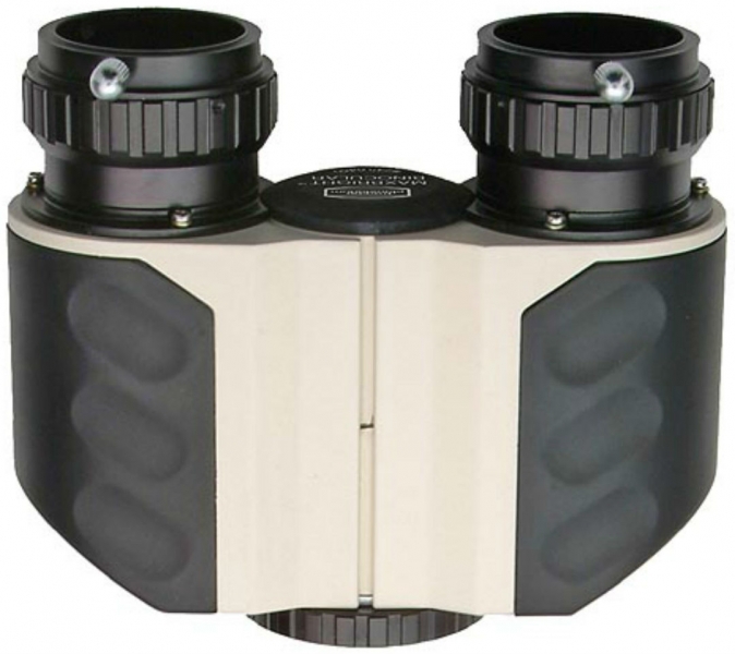 Призменный делитель изображения в металлической оправе, устанавливаемый в окулярный узел телескопа и дающий возможность наблюдать двумя глазами. С такой насадкой гораздо комфортнее вести продолжительные наблюдения: во-первых, глаза меньше устают, а во-вторых, добавляется контрастность и детали наблюдаемому объекту.
