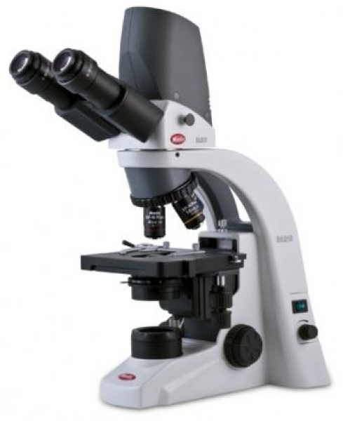 Цифровой микроскоп DMBA 210 предназначен для лабораторных исследований в биологии, медицине, ботанике, химии и других областях науки, а так же для проведения научно-исследовательских работ. Головная часть микроскопа состоит из бинокулярной насадки с наклоном 30о со встроенной 3,0 Мп (2048х1536) цифровой цветной камерой, широкопольных окуляров N-WF10х/20 c диоптрийной регулировкой. CCIS (Colour Corrected Infinity System) –оптика, рассчитанная на «бесконечность» и исправления по цвету. Цифровой микроскоп DMBA210 оборудован 4-х гнездной револьверной головкой, предметным столиком с 2-х координатным перемещением препарата (76х30мм). Фокусируемый конденсор Аббе А=1,25 с ирисовой диафрагмой и держателем светофильтров. Источник света - галогенная лампа 6В/30Вт. Методы исследования: светлое поле, фазовый контраст, темное поле, поляризация. Деление светового потока в соотношении 80/20.
