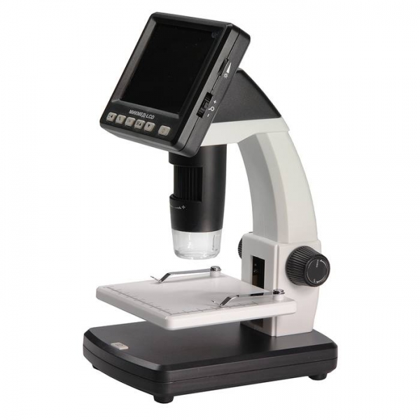 Отличительной чертой этого USB микроскопа является автономность работы. Встроенный Li-ion аккумулятор позволит работать с прибором около 2 часов. Кнопки управления встроены в ЖК-дисплей и дают возможность управлять процессом наблюдения. Когда пользователь нажимает кнопку записи, весь материал сохраняется на карту памяти MicroSD объемом до 32 Гб (записанные фото и видео файлы могут быть переданы через порт USB 2.0 на ваш компьютер).