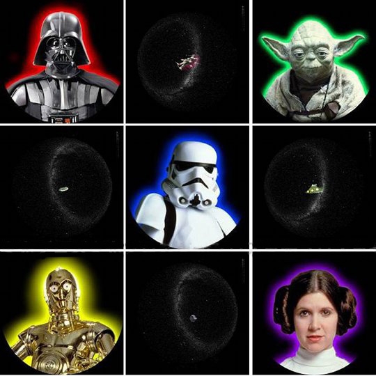 В комплект входят 9 проекционных дисков с объектами вселенной Star Wars