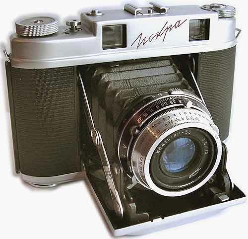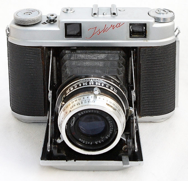 Фотоаппарат Искра относится к семейству советских среднеформатных дальномерных фотоаппаратов, который выпускался Красногорским механическим заводом (КМЗ) в период в 1960—1963 гг. Своё наименование эта камера получила по названию подпольной газеты большевиков. Данная модель имеет металлический корпус со съемной задней крышкой, оснащена автоспуском и синхроконтактом, поддерживающим работу, как с импульсными вспышками, так и с одноразовыми. Камера оснащена убирающимся объективом, который соединен с камерой гибким мехом, фокусировка выполняется перемещением всего объектива. Фотоаппарат Искра имеет механический, центральный, междулинзовый затвор (ФЗШ-18), автоматический самосбрасывающийся при перезарядке счетчик кадров. Диапазон выдержек: от 1 до 1/500 с и длительная, видоискатель в данной камере совмещен с дальномером.