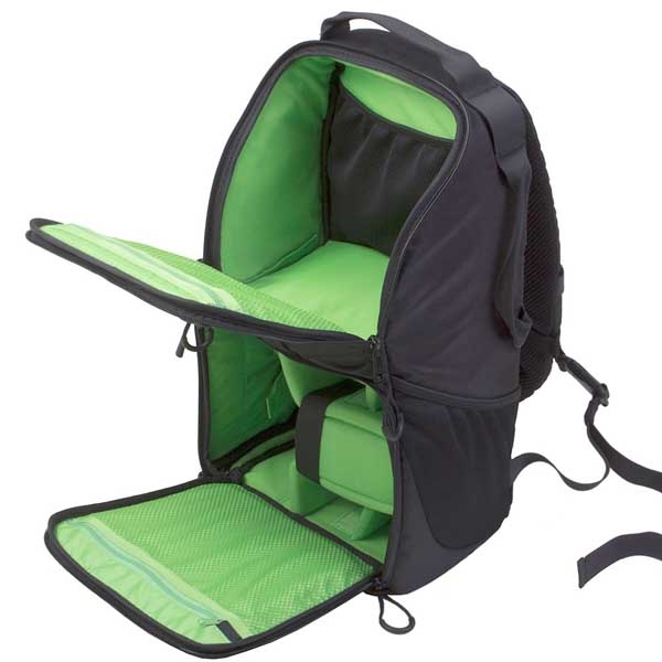 Вместительный рюкзак слинг предназначен для транспортировки и хранения зеркальной камеры, 2–3 объективов, вспышки и аксессуаров. Изготовлен из устойчивого к климатическим воздействиям нейлона с защитным вспененным наполнителем, внутренние стенки из мягкого вельвета яркого зеленого цвета, на фоне которого не затеряются даже самые мелкие предметы. Конструкция слинга и двухзамковые молнии позволяют получить быстрый доступ к фото или видео камере, дополнительному оборудованию. Можно легко перекинуть рюкзак из-за спины на живот и откинув от себя боковую крышку, безопасно и удобно открывать нижний отсек рюкзака, а также использовать это положение как упор под локоть при съемке. Широкая лямка распределяет нагрузку на плече и обеспечивает комфортную эксплуатацию.
