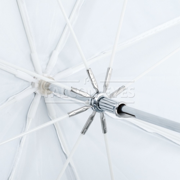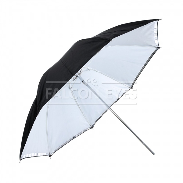 Фотозонт Falcon Eyes URK-60TSB1 Falcon Eyes URK-60TSB1 – комбинированный зонт 2 в 1: просветный/серебристый. Диаметр 122 см. Просветный зонт покрыт белой полупрозрачной тканью. Световой поток от вспышки попадает на ткань зонта, максимально рассеивается и, увеличивая площадь излучения, равномерно освещает объект съемки. Таким образом, резкий точечный свет, излучаемый при срабатывании фотовспышки, преобразуется в достаточно мягкий световой поток, излучаемый с большей площади. Серебристая поверхность зонта дает более жесткий, по сравнению с белыми зонтами, свет, что позволяет получать контрастное изображение с четкими тенями. Два зонта можно использовать совместно для получения более яркого света чем при использовании просвечивающей поверхности, но более мягкого, чем при использовании серебристой. Прочные эластичные спицы из стекловолокна и соединительные элементы из ударопрочного пластика для долговечного использования - спицы не ржавеют, сохраняют форму на протяжении всего срока эксплуатации, устойчивы к механическим воздействиям. Ткань из полиэстера обладает высокой износостойкостью.