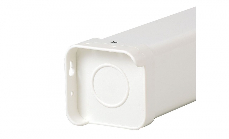 • корпус экрана с квадратным сечением выполнен из стали с белым полимерным покрытием. Торцевые заглушки корпуса изготовлены из ударопрочного белого пластика или металла для экрана с большим размером