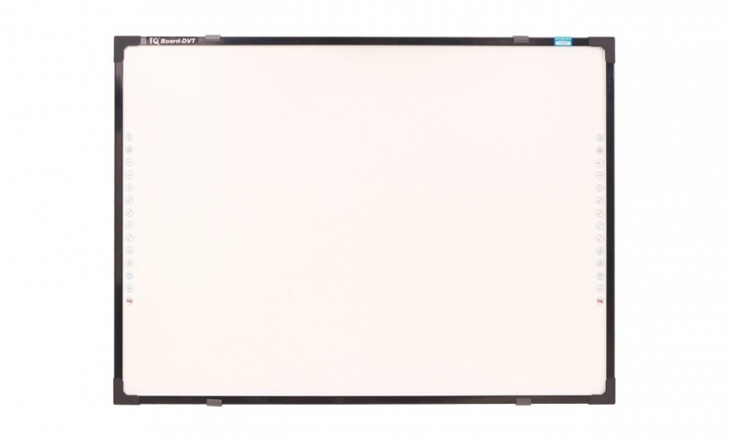 Интерактивная доска IQBoard DVT TN082 при своей работе использует технологию цифровых инфракрасных камер, расположенных по углам доски. Соответственно, позиционирование пальца или маркера происходит через отслеживание камерами. Сама поверхность доски антивантальная, антибликовая, на нее нанесена специальная пленка, чтобы можно было писать на ней маркерами сухого стирания. Доска IQBoard DVT TN082 поддерживает функцию Multi-touch и поддерживает до 10 одновременных касаний, таким образом, за доской могут работать до 5 человек. По обеим сторонам поверхности доски расположены кнопки для быстрого доступа к наиболее часто используемым функциям.