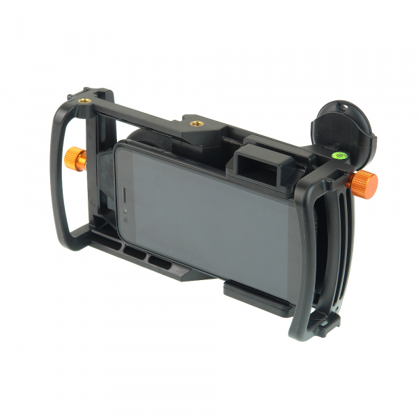 Два регулировочных винта с крупными ребристыми головками помогают точно совместить камеру с прикрепленным к клетке объективом. Одним регулируется положение смартфона по горизонтали, другим – смещение адаптера с закрепленным на нем объективом по вертикали.