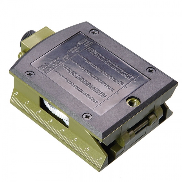 Компас удобно использовать как в открытом, так и закрытом виде (благодаря просмотровому окошку в крышке и выступающему кольцу для выставления азимута). В окошке вытравлена угломерная шкала для определения расстояния между видимыми объектами, формулы приведены на задней стороне корпуса компаса. На боковых частях компаса размечены 15 см линейка и линейка с масштабом 1:25000. Жидкостный уровень и штативная резьба 1/4" позволяют установить компас на штатив с точным выставлением линии горизонта. Компас поставляется в комплекте с нейлоновым чехлом на кнопке.