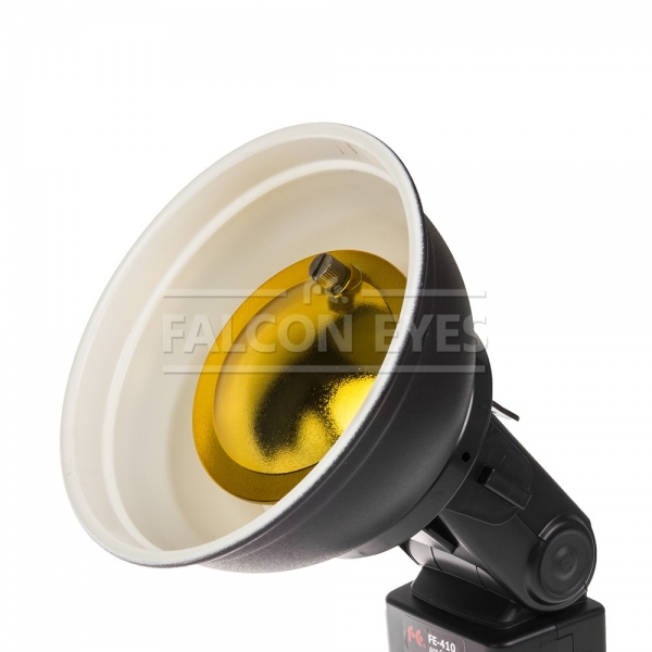 - дефлектор — 3 шт. (белый, серебристый и золотой), превращает рефлектор в портретную тарелку, изготовлен из металла, применяется для смягчения светового потока, формирует умеренные по глубине и жесткости тени, благодаря этому часто применяется в портретной съемке.