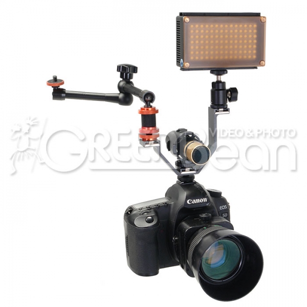 Предназначен для установки дополнительного оборудования с креплением "башмак" (вспышка, светодиодный свет, монитор, микрофон и т.д.) на фото или видеокамеры, плечевые упоры, кейджи, брекеты и т.д. Кронштейн устанавливается в крепление "башмак" и фиксируется прижимным винтом, а также может крепиться на штатив или стойку с резьбой 1/4". Кронштейн изготовлен из металла.