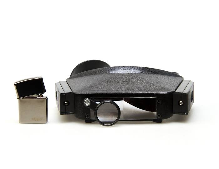 Ремешок с липучкой позволяет закрепить лупу на голове наблюдателя. Устройство крепления позволяет поднимать козырек с линзами и оставлять его в фиксированном (поднятом) положении.