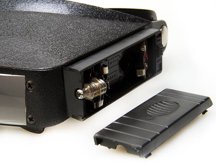 Подсветка: две лампочки накаливания, размещенные в корпусе батарейных отсеков слева и справа от края линз.