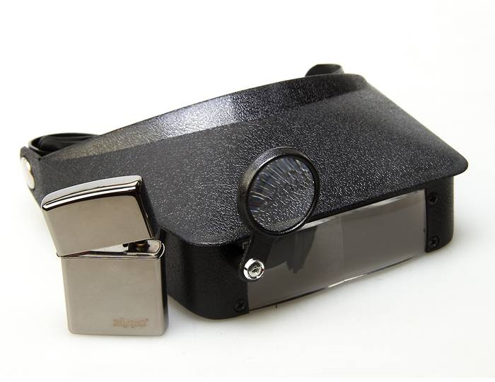 Ремешок с липучкой позволяет закрепить лупу на голове наблюдателя. Устройство крепления позволяет поднимать козырек с линзами и оставлять его в фиксированном (поднятом) положении.