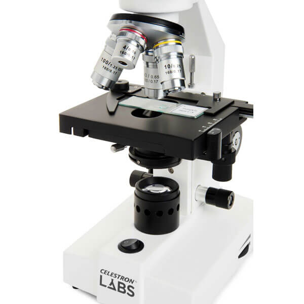 Биологический бинокулярный микроскоп Celestron Labs CB2000C со встроенным галогеновым осветителем проходящего света, позволяет быстро настроить освещение и обеспечивает яркие, естественные цвета. Два комплекта широкоугольных окуляров (10x и 20x) и 4 ахроматических объектива (4x, 10x, 40х и 100x), позволяют получить широкий диапазон увеличений (40x, 80х, 100x, 200х, 400x, 800х, 1000x и 2000х). Это позволит Вам подобрать оптимальное увеличение под конкретный образец. При необходимости можно приобрести дополнительные окуляры или объективы. Так же можно подключить цифровую камеру для микроскопа, для вывода и захвата видео изображения.