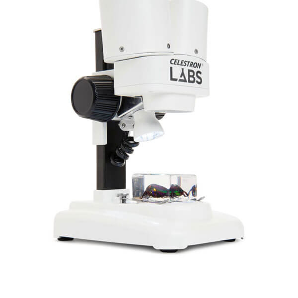 Стереомикроскоп Celestron Labs SB20 со встроенным верхним светодиодным осветителем, создает не плоское, а трехмерное изображение. Благодаря 20x увеличению он хорошо подходит для просмотра объемных деталей, таких как монеты, листья, насекомые, минералы и других средних и крупных объектов. Два широкоугольных окуляра (10x) и 2 ахроматических объектива позволяют получить увеличение 20х. При необходимости можно приобрести другие окуляры, что позволит изменять увеличение, как в большую, так и в меньшую сторону. Так же можно подключить цифровую камеру для микроскопа, для вывода и захвата видео изображения.