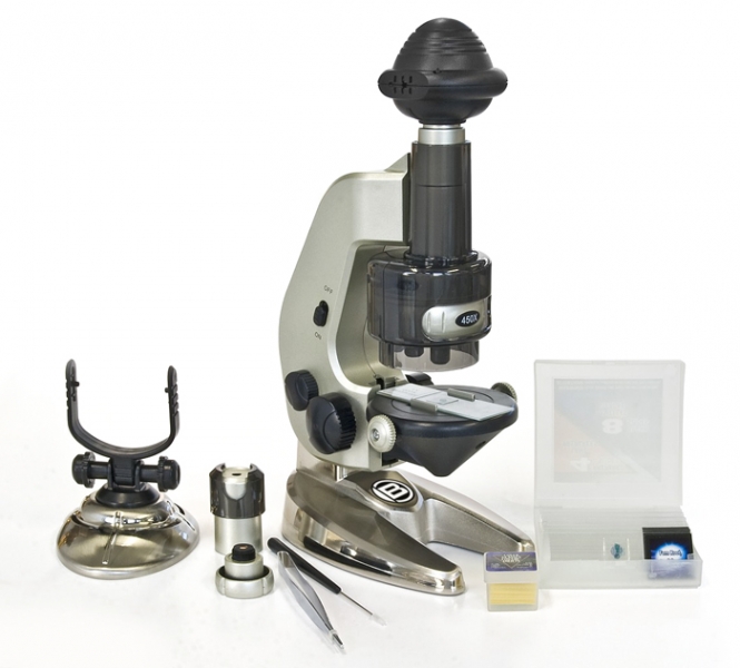 Для того, чтобы превратить биологический микроскоп в цифровой, достаточно только вынуть окуляр и установить на его место цифровую камеру. Это позволит выводить изображение с микроскопа на монитор компьютера в режиме реального времени, делать фотоснимки и записывать видео для документальной фиксации результатов наблюдений. Домашний архив микрофотографий, который легко создать при помощи данного микроскопа, поможет вам сравнить результаты наблюдений, которые проводились в разное время, кроме того вы сможете поделиться с друзьями фотографиями микроскопических объектов.