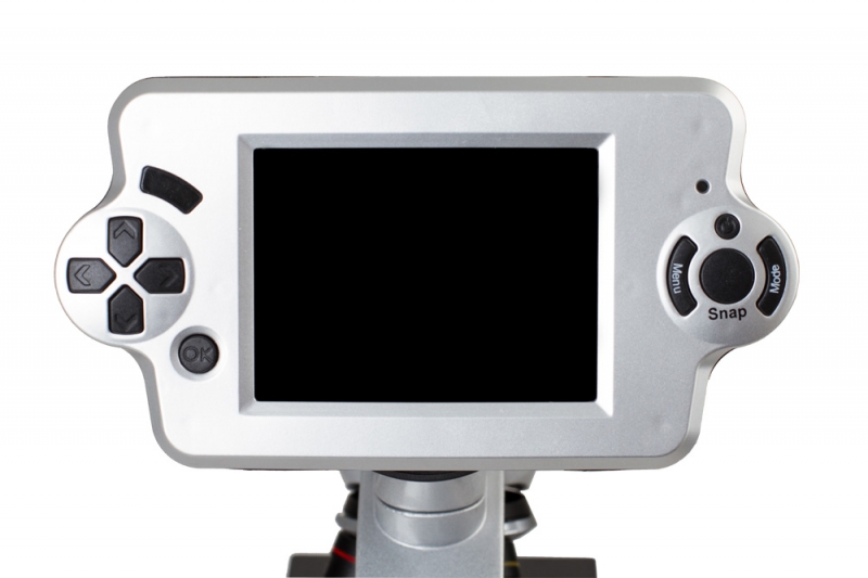 Микроскоп воспринимает изображение микропрепаратов с помощью 2 Мпикс камеры и выводит его на ЖК-монитор диагональю 3,6" (9,1 см) в реальном времени. Это облегчает групповую работу с микроскопом – изображение сразу же видят все присутствующие.