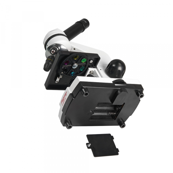 • Осветители работают от батареек АА (батарейки приобретаются отдельно), что дает возможность использовать микроскоп и дома, и в учебном классе, и в полевых условиях