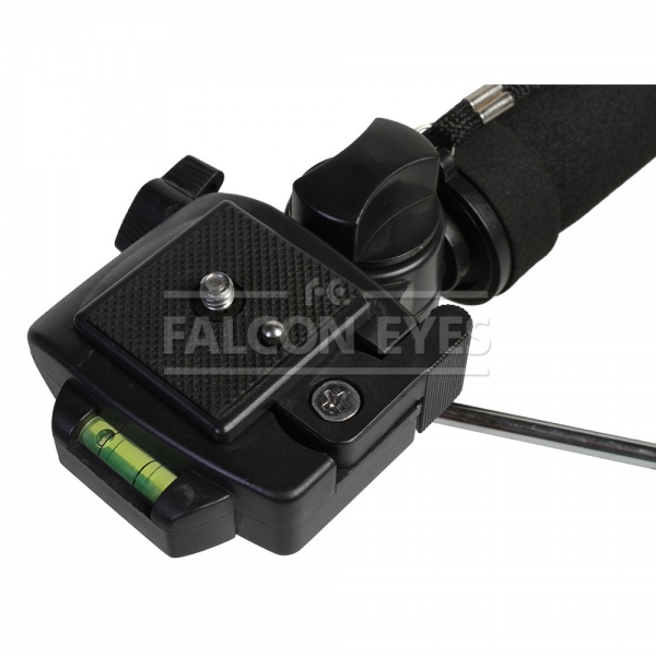 Монопод Falcon Eyes MP-3 предназначен для удобной установки фотоаппарата и стабилизации изображения. Монопод оборудован несменной 3D головкой с быстросъемной площадкой и пузырьковым уровнем. Четыре секции монопода обеспечивают широкий диапазон регулировки рабочей высоты. Максимальная высота в рабочем состоянии 180 см. В сложенном виде — 63 см. Большой диаметр секций (диаметр верхней секции 27 мм) и надежные цанговые зажимы успешно гасят передающиеся по корпусу вибрации и сохраняют прочность конструкции. Металлические зажимы с фторпластовыми прокладками обеспечивают долговечность работы и прочную фиксацию секций. Монопод изготовлен из алюминиево-магниевогосплава и весит 0,56 кг. Головка изготовлена из ударопрочного пластика.