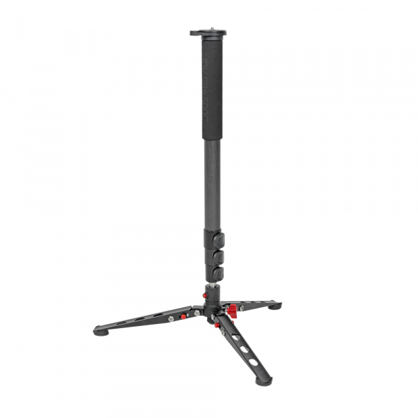 Четыре секции из карбона с клипсовыми зажимами из ABS пластика. Диаметр секций — 32, 28, 25, 22 мм. При ослаблении клипсового фиксатора — возможна регулировка зажима винтом под шестигранный ключ. На верхней секции предусмотрены: накладка-рукав из вспененного материала для комфортного удержания монопода в холодное время года и кистевой ремень для удобства удержания монопода рукой. Круглая площадка верхней базы монопода имеет реверсивный винт 1/4" - 3/8", на который крепится видеоголовка, а при необходимости непосредственно камера. Пузырьковый уровень находится на круглой площадке и имеет возможность вращаться вокруг монопода.
