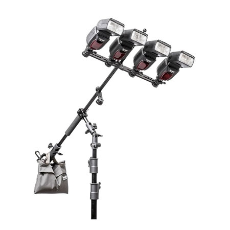 Объединенный держатель Phottix Multi boom 28" и Varos II BG предназначен для крепления от одной до четырёх накамерных вспышек (на одно или четыре крепления типа "холодный башмак"). Предусмотрены отверстия для крепления зонтов/зонтами-софтбоксов серии Phottix Easy-Up для достижения более равномерного освещения. Благодаря держателю Varos II BG возможно осуществлять крепление зонта и софт-бокса в наклонном положении в диапазоне до 180 градусов. Быстро складывается в чехол и удобен при транспортировке. Комплектация Объединенный держатель Phottix Multi boom 28" и Varos II BG: