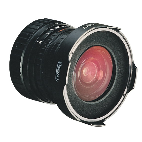- просветленный, сверширокоугольный объектив, относящийся к классу диагональных "фишаев", то есть полученный кадр будет целиком занят изображением. Угол обзора объектива составляет 180 градусов по диагонали. Управление диафрагмой и фокусировка осуществялются вручную.