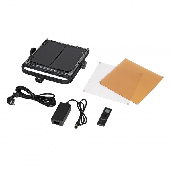 Эффективность прибора обусловлена применением в качестве источника света панели с 900 сверхъяркими светодиодами с индексом цветопередачи CRI более 90. Корпус изготовлен из металла и имеет систему естественного конвекционного охлаждения, осветитель практически не нагревается, потребляемая мощность составляет 60 Вт.
