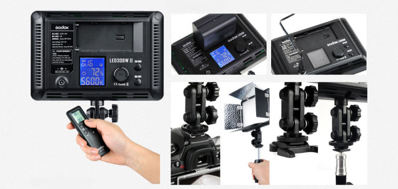 308 высококачественных светодиодов обеспечивают высокую яркость. Беспроводная система синхронизации в группы (6 групп и 16 каналов), дистанционная регулировка яркости и цветовой температуры. Три модели с большим ЖК дисплеем. Питание от литиевого аккумулятора или сетевого адаптера. Шторки в комплекте помогают создать больше световых эффектов.