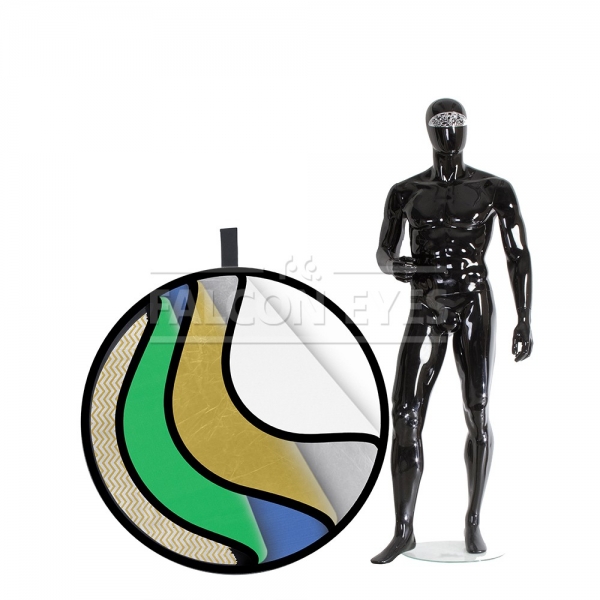 Круглый отражатель 7 в 1: золотистый/серебристый/белый отражающий/ белый просвечивающий/серебристые и золотистые полоски/зеленый/синий. Рабочий диаметр 106 см. Используется в предметной и портретной съемке, а также для подсветки участков кадра. Конструкция состоит из пружинного стального обруча с натянутой на него полупрозрачной рассеивающей тканью и чехла на молнии со светоформирующими поверхностями. Золотистая поверхность придает отраженному свету золотистые тона, добавляет теплого света в сцену. Серебристая поверхность используется для получения жесткого света, что позволяет получать контрастное изображение с четкими тенями. Высокий коэффициент отражения делает эту поверхность одной из часто используемых, найдет применение даже в пасмурную погоду. Белая отражающая поверхность позволяет получить равномерный и мягкий световой поток для подсветки теней и выравнивания светотеневого рисунка, используется как заполняющий источник. Не искажает цветовую температуру источника освещения.