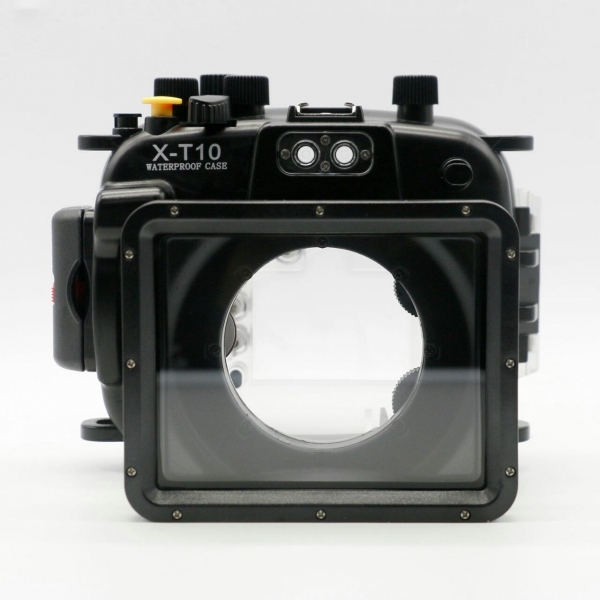 Подводный бокс (аквабокс) Meikon для фотоаппарата FujiFilm X-T10 (16-50 мм) Meikon Fujifilm X-T10 (16-50) подводный бокс (аквабокс) для фотоаппаратов Fujifilm X-T10 с объективом 16-50 мм - выполнен из сверхпрочного поликарбоната с дополнительными ребрами жесткости повышающими крепкость бокса на глубинах до 40 метров. Внешнее покрытие пластика не скользит в руках. Бокс полностью поддерживает все функции фотокамеры, включая и работу с внешними подводными вспышками через два оптических порта, имеет датчик протекания. Удачная эргономика бокса позволит Вам легко управлять фотоаппаратом даже в подводных перчатках.