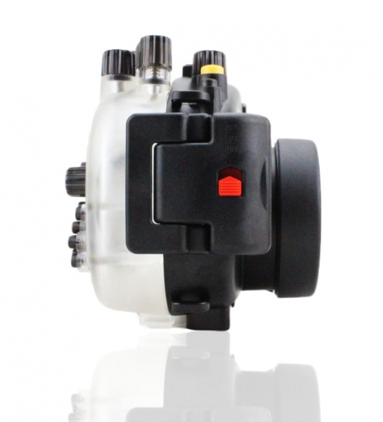 Подводный бокс (аквабокс) Meikon для фотоаппарата Olympus Pen E-P5 (17 мм) Аквабокс для фотоаппарата Olympus E-P5 с объективом 17 мм. Черный и прозрачный поликарбонат. Глубина погружения до 40 метров.