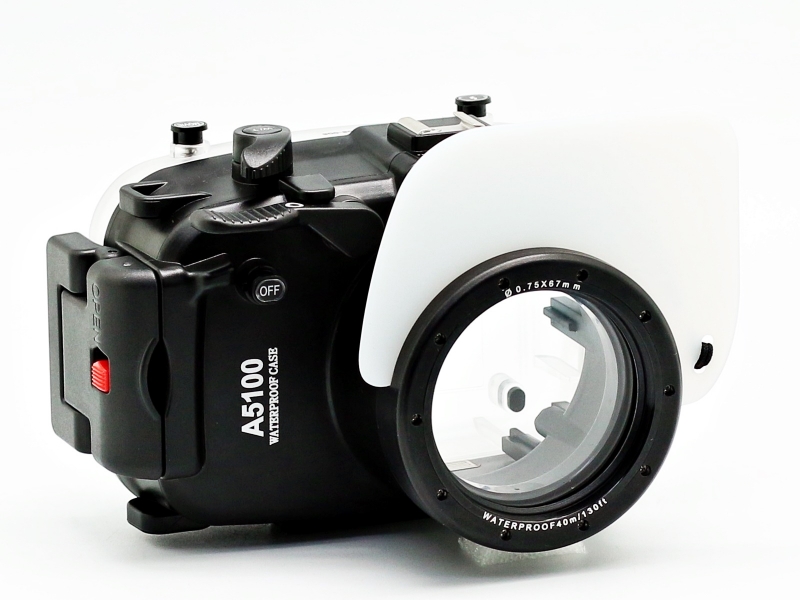 Meikon A5100 (16-50) подводный бокс (аквабокс) для фотоаппарата Sony A5100 Kit с объективом SEL 16-50 mm - выполнен из сверхпрочного поликарбоната с дополнительными ребрами жесткости повышающими крепкость бокса, максиальная глубина погружения 40 метров. Внешнее покрытие бокса не скользит в руках. Бокс полностью поддерживает все функции фотокамеры, включая и работу с внешними подводными вспышками через два оптических порта. Удачная эргономика бокса позволит Вам легко управлять фотоаппаратом даже в подводных перчатках. Все подводные боксы Meikon проверяются в барокамере при давлении эквивалентном максимальной глубине погружения. Иллюминатор бокса имеет резьбу 67 мм для крепления фильтров и насадок.