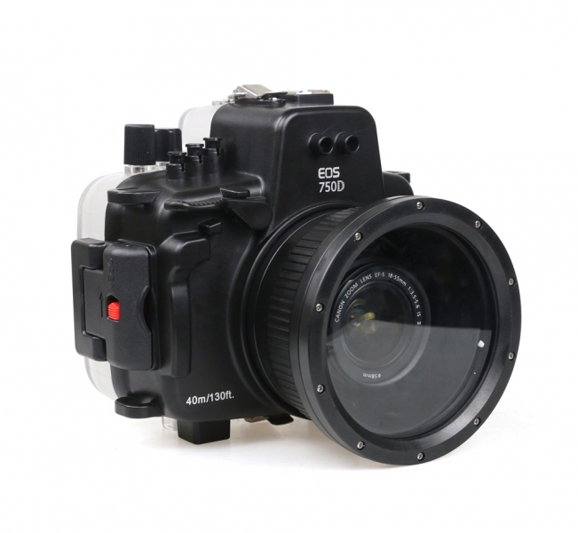 Подводный бокс (аквабокс) Sea Frogs для фотоаппарата Canon EOS 750D (18-135 мм) Подводный бокс для Canon EOS 750D сделан из прочного поликарбоната. Бокс имеет сменные порты для объективов, в комплекте поставляется с портом под объектив EF-S 18-135 STM. Байонет Type 1. Глубина пгружения 40 метров. Оптический порт позволяет подключать внешние вспышки. Имеет датчик протечки со звуковым и световым сигналом. На боксе также установлен оптический видоискатель. Также бокс имеет крепление типа "холодный" башмак и снизу два штативных гнезда. Удобная эргономика позволит вам быстро управлять всеми функциями фотокамеры.