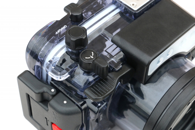 Подводный бокс (аквабокс) для фотоаппаратов Sony Sony CyberShot RX100 моделей I-V - выполнен из сверхпрочного поликарбоната с дополнительными ребрами жесткости повышающими крепкость бокса, глубина погружения 60 метров.