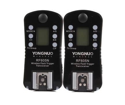 Радиосинхронизатор Yongnuo RF-605N для Nikon позволяют запускать накамерные вспышки дистанционно в ручном режиме, с выдержкой до 1/200 - 1/320 сек. Синхронизатор Yongnuo RF-605N выполнен в виде трансивера и может использоваться как приемник, так и передатчик. Наличие 16 каналов в 6 независимых группах позволяют запускать разные вспышки, что очень удобно для постановочной съемки со сложными световыми схемами и для студийной работы. На триггере имеется небольшой LCD экран отображающий текущие установки.