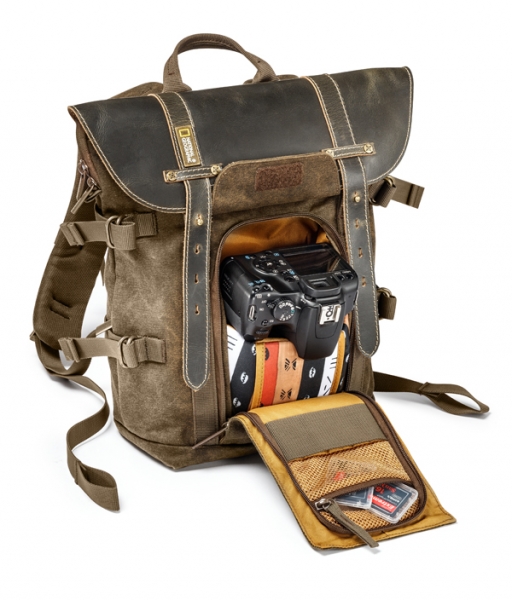Обновленная модель популярной серии Africa. Прочный брезент идеально сочетается со вставками и ремнями из натуральной кожи. Стильный дизайн, высококачественные материалы, фирменная винтажная фурнитура, внутренние секции и мягкий защитный кофр. Имиджевый рюкзак для личных вещей, фото- или видеокамеры и различных аксессуаров. Для оборудования предусмотрен специальный отсек в нижней части рюкзака с дополнительной защитой. Предусмотрено крепление небольшого штатива. Множество карманов внутри и снаружи для размещения различных аксессуаров. Так же в рюкзаке есть отсек для ноутбука до 12`. Мягкая, дышащая ткань на спине и лямках обеспечивает комфортное ношение.