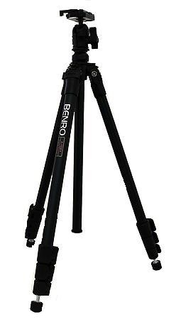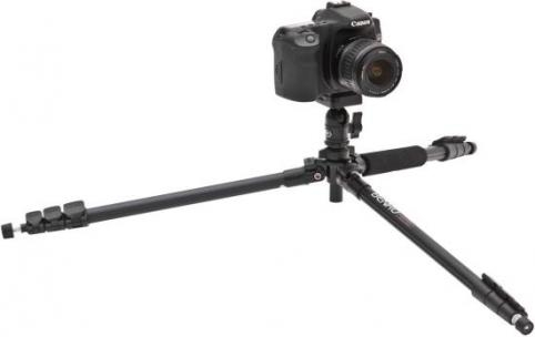 Четырехсекционный облегченный штатив из высокопрочного алюминиевого сплава с быстрой фиксацией секций курковыми эксцентриками. Возможна независимая фиксация опор под углом 24, 55 или 80 градусов от вертикали. Штатив оснащен пузырьковым уровнем, подпружиненным крюком для противовеса, мягкой муфтой для переноски и несъемными резиновыми наконечниками опор. Имеется чехол для хранения штатива.