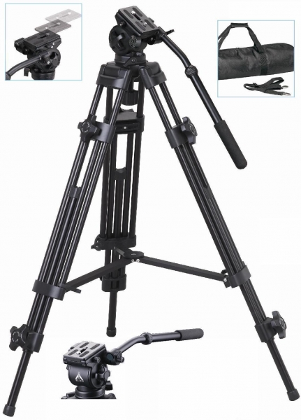 Профессиональный видеоштатив выполнен из алюминиевого сплава и имеет собственную профессиональную (плавающую)мощную видеоголовку с ручкой для легкого и быстрого управления положением камеры. Секции ног штатива двух верхних уровней сделаны из пары тонких трубок каждая.Это гарантирует устойчивость от колебаний ветра. Ноги заканчиваются стальными шипами