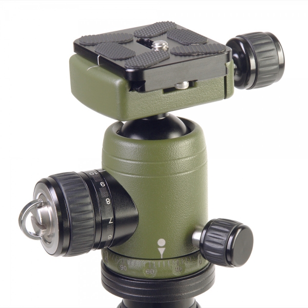 Шаровая голова обладает высокой прочностью и прецизионным исполнением. Все движения площадки с камерой происходят плавно и без «рывков». Особенностью данной штативной головы является механизм фрикционного контроля, который позволит настроить предустановленную силу трения шара в свободном состоянии. Рукоятка фиксации шара оборудована вращающимся диском с цифровой шкалой, это позволяет запомнить установленное регулятором усилие. Фиксатор на оси панорамирования работает независимо от фиксатора шара и позволяет регулировать вращение, не теряя выбранного наклона камеры. Быстросъемная площадка оборудована механизмом безопасности, который предотвращает падение камеры при случайном ослаблении фиксатора. Прорезь под 90° обеспечивает возможность перевода камеры между горизонтальным и вертикальным форматами. Выравнивающий пузырьковый уровень поможет выставить камеру по горизонту.