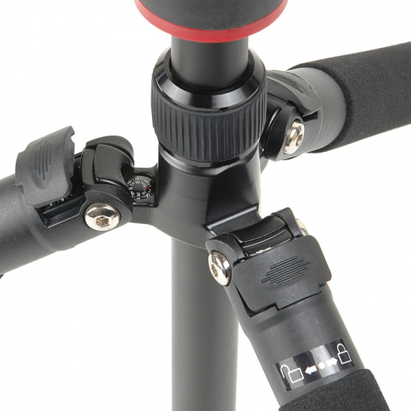 Четыре секции ножек штатива изготовлены из алюминиевого сплава. Анодированное покрытие обеспечивает сопротивление ржавчине, а большой диаметр секций позволяет уменьшить вибрацию. Диаметр ножек штатива — 25, 22, 19 и 16 мм. Секции ног надежно фиксируются цанговыми замками из ABS пластика. Ножки штатива имеют фиксаторы угла наклона которые расположены на верхних секциях ножек — у их основания. Селекторы угла расстановки ног позволяют зафиксировать каждую ногу на любом из трех заданных углов независимо друг от друга, это обеспечивает большую гибкость для позиционирования камеры и дает возможность использовать в качестве опоры ступени, камни или другие сложные поверхности, а также проводить съемку с нижней точки. Механизм фиксации и шарнир наклона ножек изготовлены на высокоточном CNC оборудовании. Все три верхние секции ножек снабжены накладками-рукавами из вспененного материала. Это обеспечивает комфортное удержание штатива в холодное время года. На концах штативных ног размещены пятки с резиновыми наконечниками и металлическими шипами.