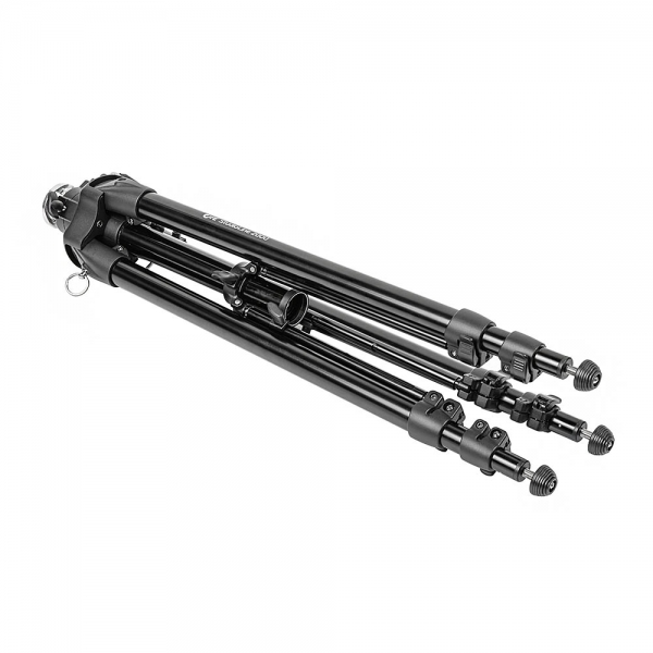Студийный фото-штатив с редукторным механизмом поднятия колонны предназначен для установки тяжёлых камер. Ход центральной колонны составляет 235 мм. Максимальный вес устанавливаемого оборудования -12 кг. Секции штатива изготовлены из алюминиевого сплава, металлические зажимы(клипсы) с регулировкой усилия . Диаметр секций начиная с нижней: 25, 30 и 35 мм. Диаметр центральной колонны — 40 мм. Для устойчивости штатив оснащён верхней телескопической растяжкой. Дополнительно длина растяжки фиксируется подпружиненной кнопкой и винтом. На корпусе штатива есть пузырьковый уровень. На концах штативных ног размещены шипы, на которые накручиваются резиновые опоры. Шипы используются вне помещений, например для устойчивости на грунте или на льду, а резиновые опоры обеспечивают отличное сцепление на скользких и гладких поверхностях и для защиты поверхности пола от царапин и повреждений. На одной из секции штатива предусмотрено стальное кольцо для карабина, который фиксирует мешок для песка или для груза (в комплект не входят). Высота штатива в сложенном виде — 80 см. Вес 4,4 кг. Купить штатив