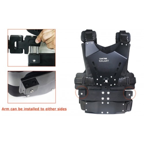 Жилет оператора Galaxy изготовлен из высокопрочных материалов. Он отличается своей эргономичной конструкцией, которая обеспечивает оператору максимальный комфорт во время работы. Руку к жилету можно подсоединить как с правой, так и с левой стороны. Мягкая подкладка расположена со стороны груди и спины.