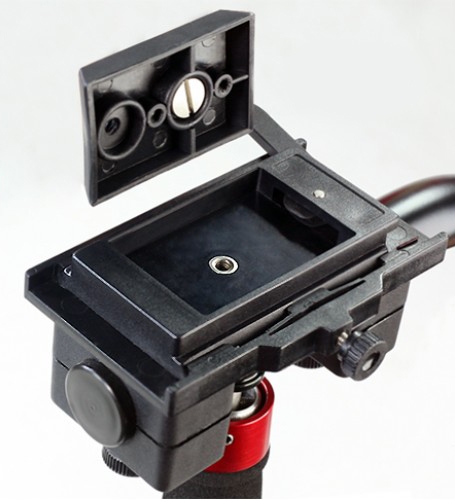 • Быстросъемная площадка позволяет быстро и легко установить или демонтировать камеру, при этом не сбивая настроек остального оборудования, дает возможность установить стедикам на штатив