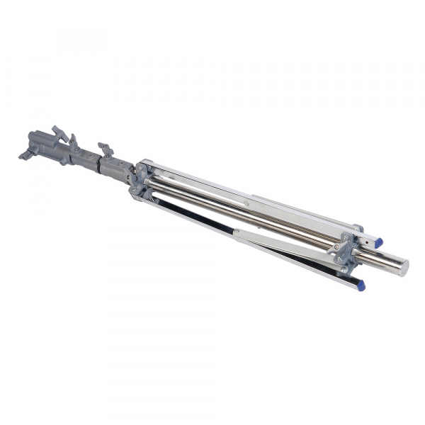 - Прочные ножки из прямоугольного стального профиля (26 х 26 мм) обеспечивают устойчивое положение стойки на любой поверхности. Благодаря пластиковым насадкам они не царапают пол. Одна из ног – телескопическая (длина увеличивается на 25 см). Это дает возможность использовать стойку на поверхности с перепадом высот, например на лестнице, или наклонить ее под нужным углом, если дополнительно укомплектовать подходящим противовесом.