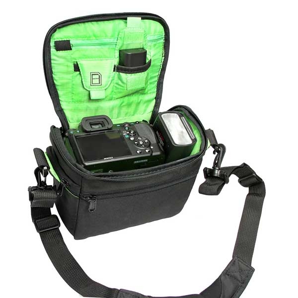 Сумка GreenBean Guardian 01, самая маленькая из серии, вмещает в себя зеркальную камеру с штатным объективом и один дополнительный объектив или вспышку, аксессуары. Упругий вспененный материал обшитый износоустойчивым нейлоном и вельветовое внутреннее покрытие защитит оборудование от климатических воздействий, царапин и повреждений. Регулируемая по длине лямка с мягким наплечником и широкая ручка обеспечат комфортную эксплуатацию. Двухзамковая молния для быстрого доступа к содержимому. Основной отсек для техники имеет регулируемые перегородки на липучках, благодаря этому пространство внутри рюкзака можно настроить под необходимое оборудование. Внутри расположены два кармана на липучках и карман на молнии, в них можно разместить карты памяти, батарейки, светофильтры