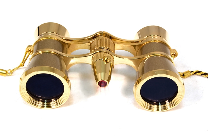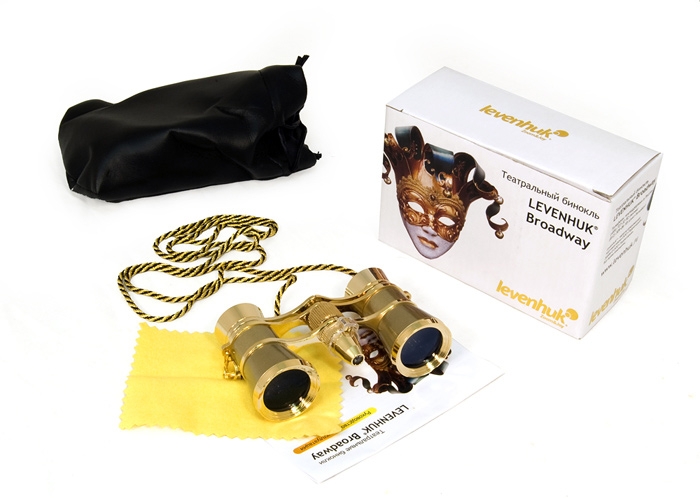 Театральный бинокль – это не только оптический прибор, но и стильный аксессуар, поэтому внешний вид для него не менее важен, чем отличное качество оптики. Levenhuk Broadway 325F объединяет в себе классический внешний вид и современные технологии, он будет стильным элементом вашего костюма и верным спутником в зале театра. Этот бинокль – сияние золота в ваших руках. Металлический корпус полностью окрашен золотистой краской и удачно дополнен черно-золотой цепочкой для переноски бинокля. Кроме изысканного внешнего вида он отличается и хорошими оптическими характеристиками – большое поле зрения позволяет не упустить из виду происходящие на сцене события, а стеклянная просветленная оптика обеспечивает отличное качество изображения. Удобный механизм центральной фокусировки позволяет настраивать резкость изображения в обоих окулярах одновременно, а межзрачковое расстояние регулируется в широких пределах. Бинокль имеет встроенную светодиодную подсветку – узкий и яркий луч может быть полезен в темном зрительном зале, при этом он не помешает вашим соседям, и не будет отвлекать их от спектакля.
