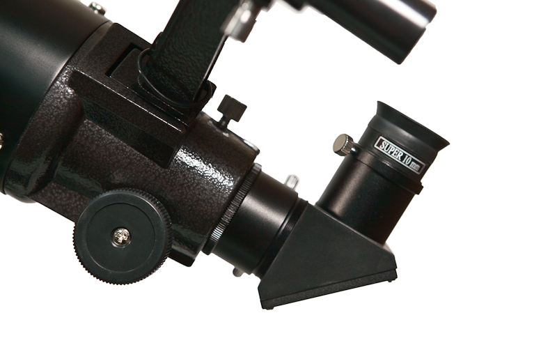 Ахроматический объектив телескопа имеет просветляющее покрытие, которое обеспечивает максимальное светопропускание. Прочная и легкая алюминиевая труба установлена на экваториальную монтировку, оснащенную ручками тонких движений и допускающую установку электропривода часовой оси (приобретается отдельно). Такая монтировка имеет специальные координатные круги, с помощью которых, после несложной настройки, можно находить объекты по их экваториальным небесным координатам, а также сопровождать суточное движение объекта вращением только одной ручки. Тренога регулируется по высоте и имеет удобную полочку для принадлежностей, а оптический искатель с 6-кратным увеличением позволит быстро навести телескоп на нужный участок неба. С телескопом поставляются 2 окуляра, имеющие поле зрения 52 градуса и фокусные расстояния 10 мм и 25 мм, и дающие с телескопом увеличение 90 и 36 крат. Линзы окуляров изготовлены из стекла и имеют многослойное просветление. Реечное фокусировочное устройство изготовлено из металла, имеет посадочный диаметр под окуляры стандарта 1,25” (31,75 мм), и позволяет использовать с телескопом множество других, имеющихся на рынке, окуляров, помимо входящих в комплект. С их помощью увеличение телескопа может быть поднято до полезного предела в 180 крат. Фокусировочное устройство имеет стандартную Т-резьбу, которая, через дополнительное переходное кольцо, позволяет присоединять к телескопу зеркальную фотокамеру и производить съемку Луны и других ярких объектов.