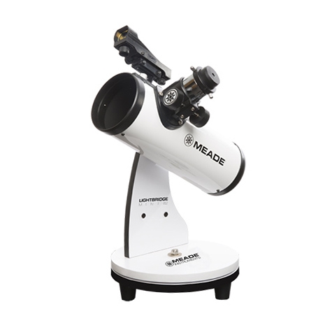 Телескоп MEADE LightBridge Mini 82mm - этот небольшой телескоп поможет вам сделать первые шаги по просторам Вселенной и совершить для себя немало интересных открытий. Несмотря на очень привлекательную цену, телескоп обладает неплохим световым диаметром 82 мм, позволяющим увидеть массу астрономических объектов практически неразличимых невооруженным глазом. Lightbridge Mini 82 мм позволяет исследовать Луну, планеты солнечной системы и некоторые объекты дальнего космоса. Отличительная черта телескопа Lightbridge Mini - очень компактная и простая в обращении настольная монтировка в стиле Добсона, обеспечивающая легкое наведение на объекты ночного неба и не требующая сборки и настройки. Телескоп не займет много места при хранении и транспортировке, а его установка займет меньше минуты. Простоту в обращении, качественную оптику и привлекательный дизайн дополняет хороший набор принадлежностей, включенный в комплект поставки: 2 окуляра и линза Барлоу, позволяющие подобрать 4 различных кратности увеличения для наблюдения тех или иных астрономических объектов, искатель с красной точкой для удобства наведения телескопа и планетарий на DVD диске.